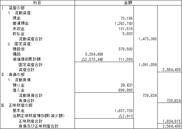 2024年度特定非営利活動に係る貸借対照表(2025年3月31日現在)
