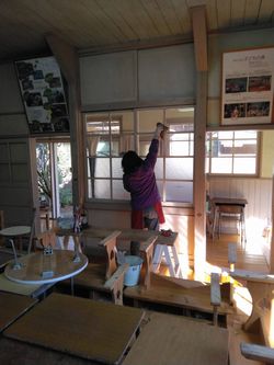 昨年はやれませんでしたが、恒例の森の学舎大掃除を2日間かけて行いました。教室等の窓や床・所蔵図書の徹底掃除、雨樋の葉っぱ等の詰まり撤去等々、管理棟まで手がまわりませんでした。