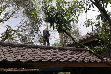 2日:グランドの1/4の草刈が残りました。 午後には、樹高が高くなり過ぎたキンモクセイの剪定作業もおこないました。