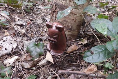 今年度の妖精の森の竹伐採作業です。孟宗竹は新たに生えてきておらず、細い藪竹を除去しました。妖精は元の場所から少し動いていました(自分で歩いたのでしょうか)。