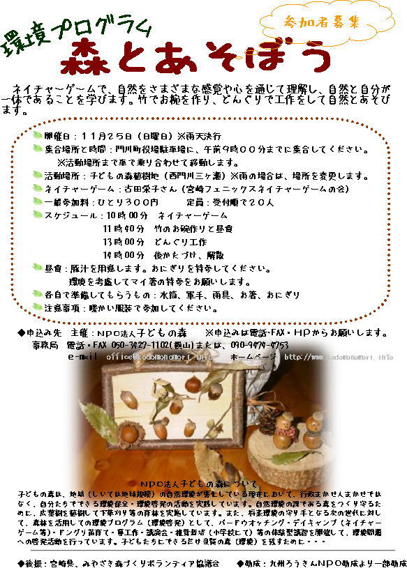 主催:特定非営利活動法人子どもの森