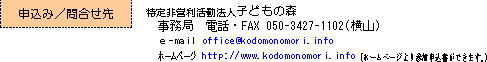 電話・FAX 050-3427−1102(横山) e‐mail:office@kodomonomori.info