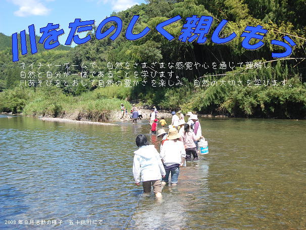 | 9:00〜 | オリエンテーション、川あそび・魚、エビとり、お昼(取れた魚はいただきます)、ネイチャーゲーム |