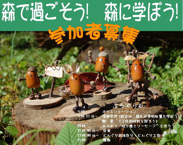 ◇ 参加費:一人700円 ※参加費は、食材・工作の材料費・どんぐり苗づくり・講師代・保険代などを含みます。