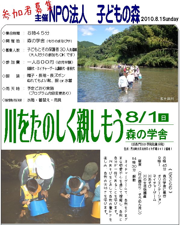 川をたのしく親しもう (終了しました)