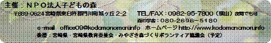 ◆ 申込・問合せ先:電話・FAX: 0982-95-7800 森の学舎:080-2696-5180