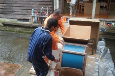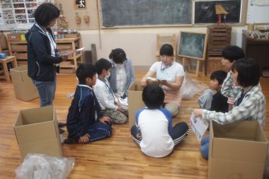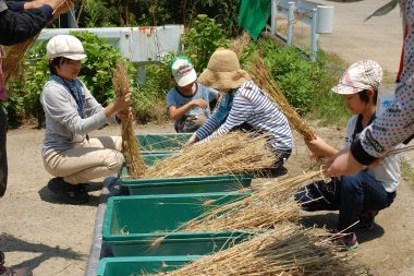 | 段ボールコンポストの組み立て | 唐箕での風選 |