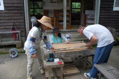 9:30〜12:00、13:00〜15:30 イカダ作り