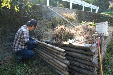11月6日 草を堆肥にするための草置場が一杯になったため新しい草置場を設置。 次回のecoスクールで畑を耕うんするための草刈。