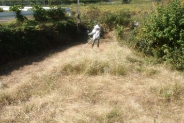 | 浮き輪10セットを紐とめします。 | 防草用に麦わらをカットしました。 |