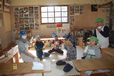 | スクール生:7人 スタッフ:3人 一年をかけて活動してきた“四季をまるごと体験ecoスクール”6期生のパンづくり・環境学習・文集のための感想文書き・閉校式が無事終了いたしました。最終日は、いつもより60分遅い終了でした。 |