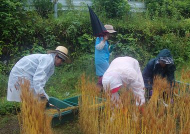 ecoスクールの初参加ボランティアさんがいます。そのため、1週間後の脱穀作業のために、一連の作業を実施しました。