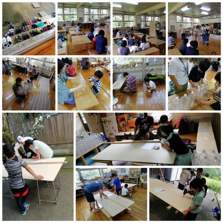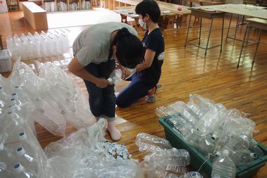 20分:1艘あたり(ペットボトル×4)10個のペットボトルで浮き具作り