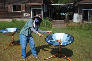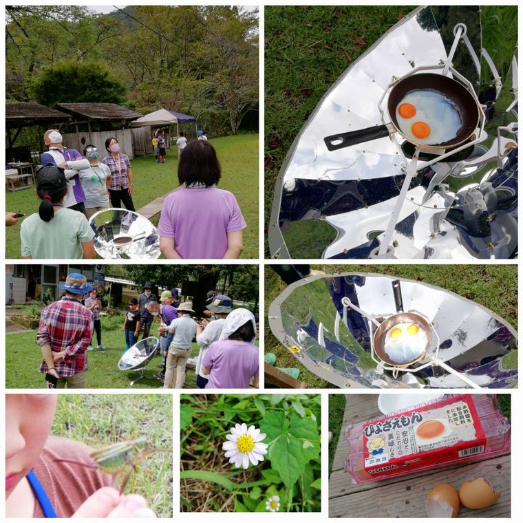 あいにくの曇り空、太陽がないとできないソーラークッキングは、予定通りできず、解散前の時間(太陽が顔を出した数分間)に試体験程度しかできませんでした。