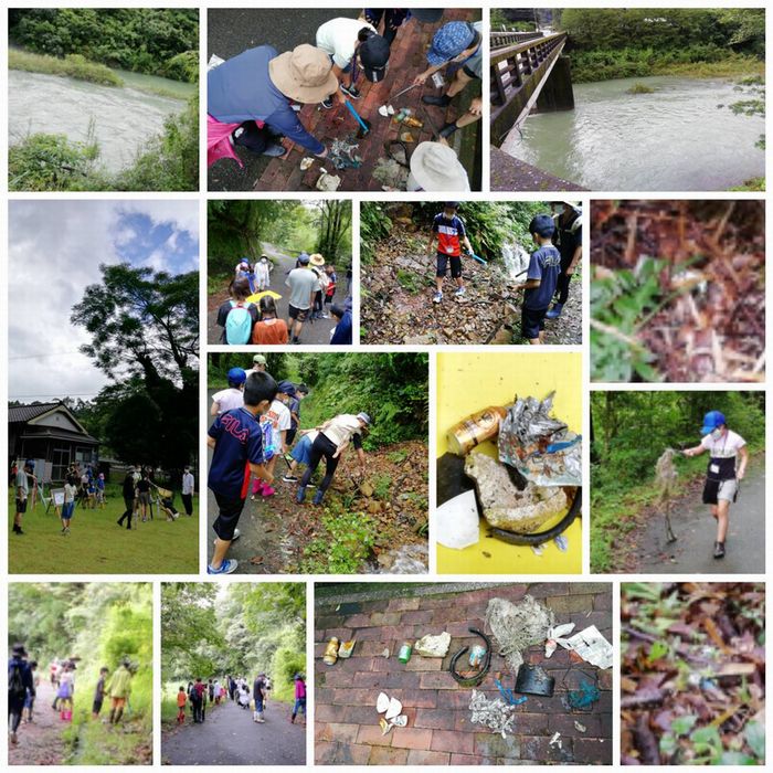 森の学舎の前を流れている五十鈴川支流の松瀬川で、川側からでないと撤去できない川岸のゴミ拾いと、川の生き物を調べ観察する予定でしたが、川の水量が多いために、道沿いのゴミ拾いと田んぼでの生き物調査に変更しました。他にネイチャーゲームも体験してもらいました。
