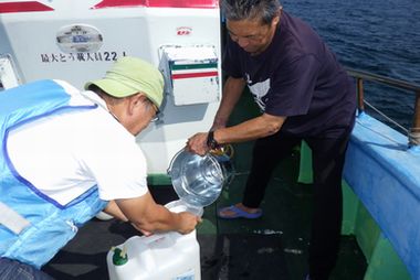 | ビロウ島付近での海水汲み | |
