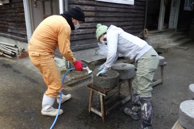 A石臼の清掃と教室の設置:小麦を挽くための石臼を水洗いと小麦引きをするための教室レイアウトを行いました。