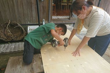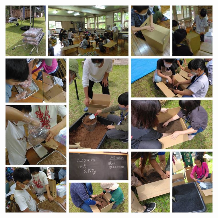 解散後、前回欠席した一組の家族には、段ボールコンポストを作ってもらいました。