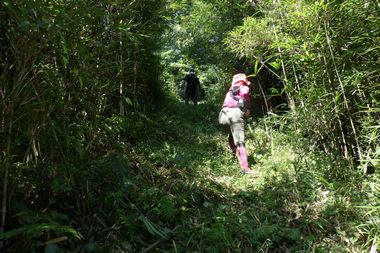 A清掃終了後、イカダを持って登る道の草刈りと簡易階段の修理。