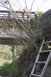 麦畑の側際法面のイヌビワが法面ブロックに根をはっていて、法面ブロックに裂け目ができています。このままイヌビワが成長していくと法面ブロックが崩壊する恐れがあるので伐倒しました。