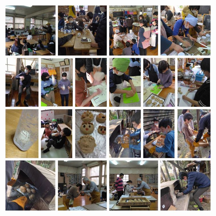 それぞれ1次発酵が終わったと思われる家族からパン成形に入りました。お昼のお弁当も、それぞれのタイミングでとってもらいました。パン形成の終わった家族からパン焼きにはいりました。