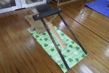 A 千歯こきの準備 他、ターフ(防水処置をしました)の準備