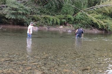 @ 川の深みや流れは毎年変わるので、川の状態をチェックしました。