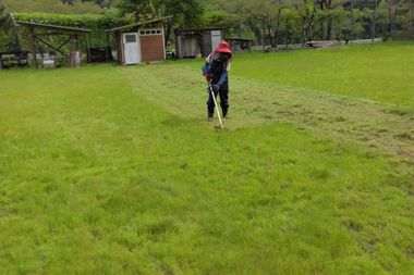 @ 昆虫観察のためにグランド一部の草刈とビオトープ内に生えているチガエを撤去しました。