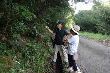 9:45〜12:00 昆虫写真家の新開さんの案内で、グランドからスタートしてビオトープを経由して森の学舎から南下する町道の法面を約500mに渡り昆虫を探し、見つかった昆虫の説明と写真撮影を行いました。