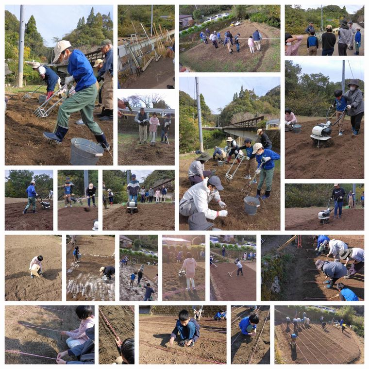 9:45〜12:00 参加者皆で、土起こし器や鍬、熊手を使って麦畑の草取りにがんばりました。最後には耕運機で仕上げました。手作業での丹念な作業は、細部にわたる注意と愛情を麦畑に注いでいるようで、それが最後の仕上げで耕運機を使うことで、より広範で一貫性のある整備が実現されました。 この協力と努力、そして最適なツールの使い分けが、麦畑にとって理想的な状態を生み出し、収穫の期待が高まります。参加者の皆さんの頑張りに感謝し、豊かな収穫が訪れることを祈ります。