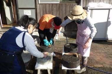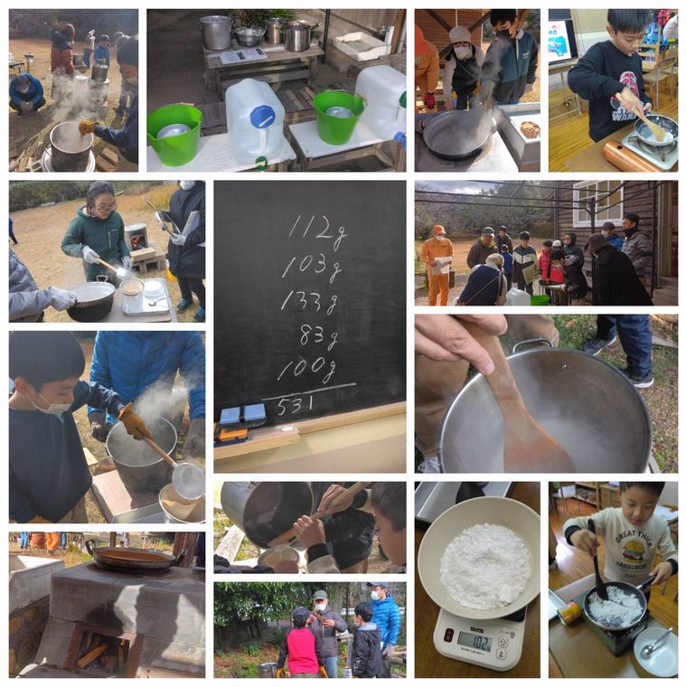 家族単位のグループで、5グループに分かれて塩作りを実施しました。