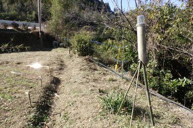 今年も、鹿による麦芽の食害が発生したので、鹿の被害対策を施しました。@道路からの出入り口に網、A川からの昇降口に防獣テープ、B防獣ライト、C麦芽の列に防獣テープ、D夜間にラジオ音。以上、どれ位効果があるのか不明ですが。