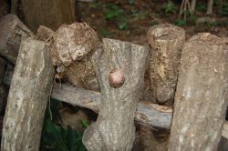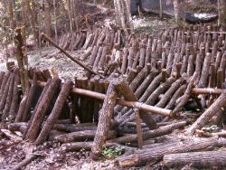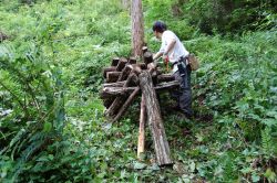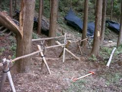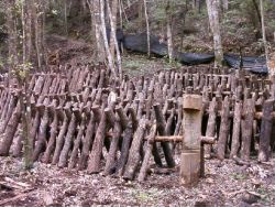![]() 柱に杉を渡したほだ場 |