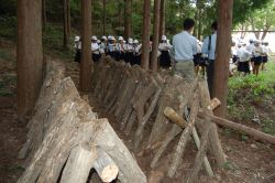 小学校での椎茸ほだ木の本伏せ2007 2007年6月21日