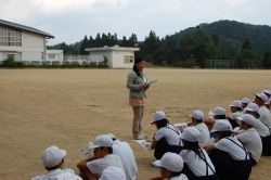 | 子どもたちは、4時間目は体育でプール授業だそうです。きっと、汗をかいた後のプールは気持ちよかったでしょうね。 1組、2組で記念撮影⇒ |