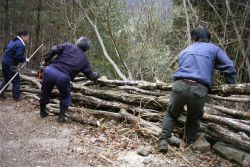 ![]() ほだ木をほだ場へ移動 |