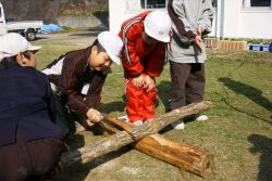 ![]() ノコギリで1mの原木作り(玉切り) |