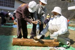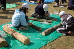 五十鈴小学校で使用する原木 |