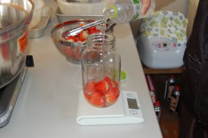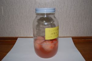 ![]() 瓶は煮沸殺菌し冷ましてからイチゴを入れます。 |