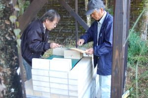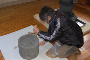 ![]() 石臼は左廻しでゆっくりと廻します。 |