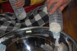 ![]() 牛乳10ccと生クリーム40ccをペットボトルに入れ(左下へ) |