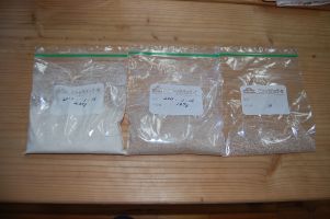 ![]() 小麦粉(230g)と荒粉(100g)、他に屑 |