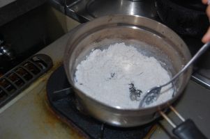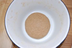 ![]() 小麦粉は全粒粉と細かい粉が混ざっています。 |