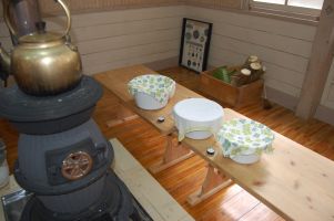 | パン生地を3個つくり、一次発酵と二次発酵に薪ストーブの熱を使用しました。 | |
