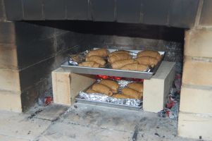 | パン窯を1時間以上に熱してから、パンを焼きます。 | |