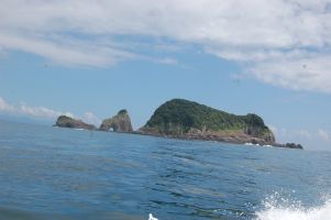 | 門川湾に浮かぶ乙島 | カンムリウミスズメ繁殖地のビロウ島 |