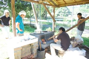 | 《委員会》 8/9(月):事業の詳細計画や担当を決める。2月上旬:改善検討と次年度へ結びつける計画を立てる。 《塩づくり》 9/4(土):船で海沖まで出かけ海水を汲み取り。9/4(土)〜5(日):釜戸で煮詰め塩にする。 《パン釜づくり》 10/2(土)、3(日)、11/6(土)、7(日)、12/4(土)、5(日):釜戸小屋に、耐火煉瓦でパン焼窯を製作する。10月と11月の日程は仮日程として地域の行事等を考慮して日程を決定する。 《天然酵母の学習》 パン釜づくりの最初の日曜日とする。 《小麦粉づくり》 12/4(土)、5(日):石臼で小麦を挽く。また小麦粉づくりの日には「パン釜づくり」も行う。 《バターづくり》 1/16(日):牧場まで出かけ牛の乳搾りをして絞った牛乳をバターに加工する。 《パン焼》 1/22(土)、23(日) |