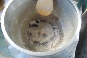| まずはパン生地作りから作ります。 | |