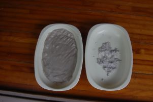 ![]() 窯の床になるフラワベースの強度をだすため鉄板を引きます。 |