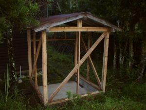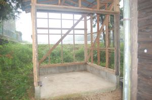 その後に、柱には防腐剤を塗装しました。次回は、パン窯製作です。